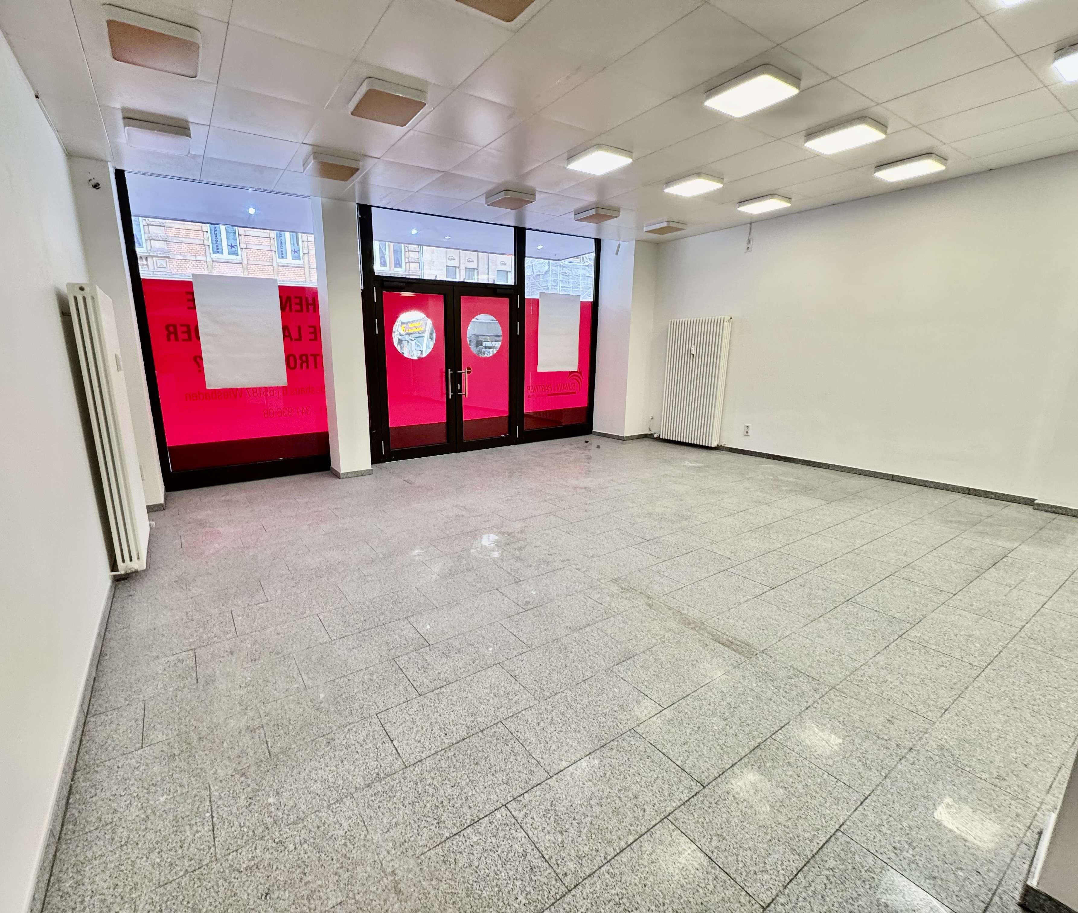 Die Verkaufsfläche (ca. 102 m²) ist hell und gradlinig geschnitten. Die Fensterfront beträgt ca. 7m. Die Fensterfront erstreckt sich über die gesamte Ladenbreite. Damit haben Sie