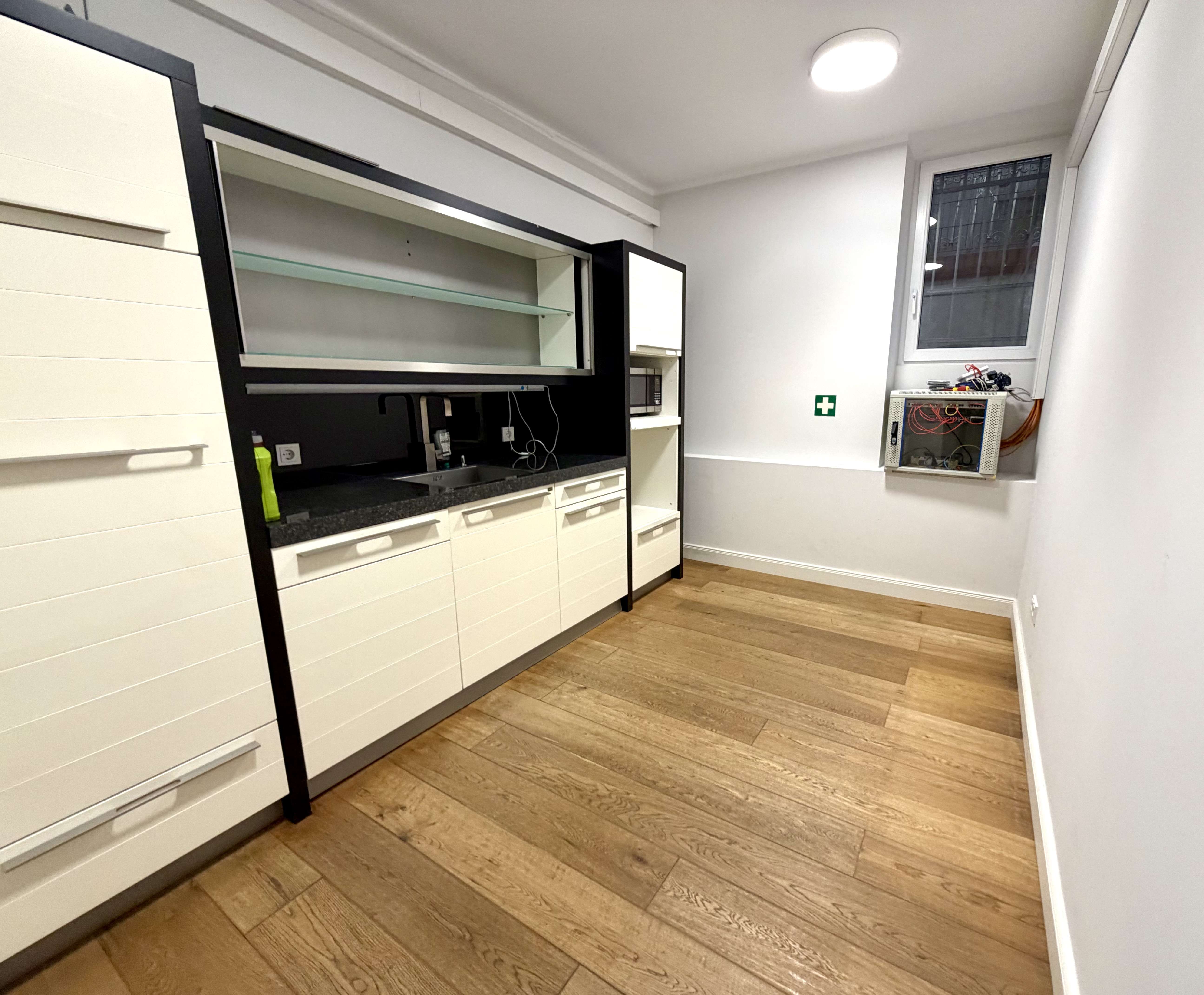 * Großzügiger Aufenthaltsraum mit integrierter Einbauküche für Mitarbeiter
