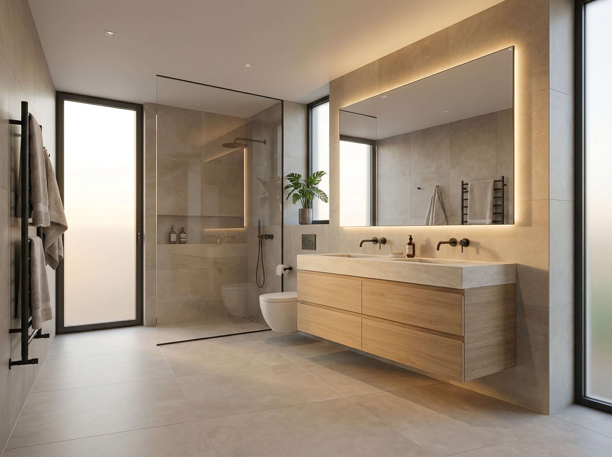 • Marken-Sanitärobjekte (u. a. Laufen, Hansgrohe oder gleichwertig)