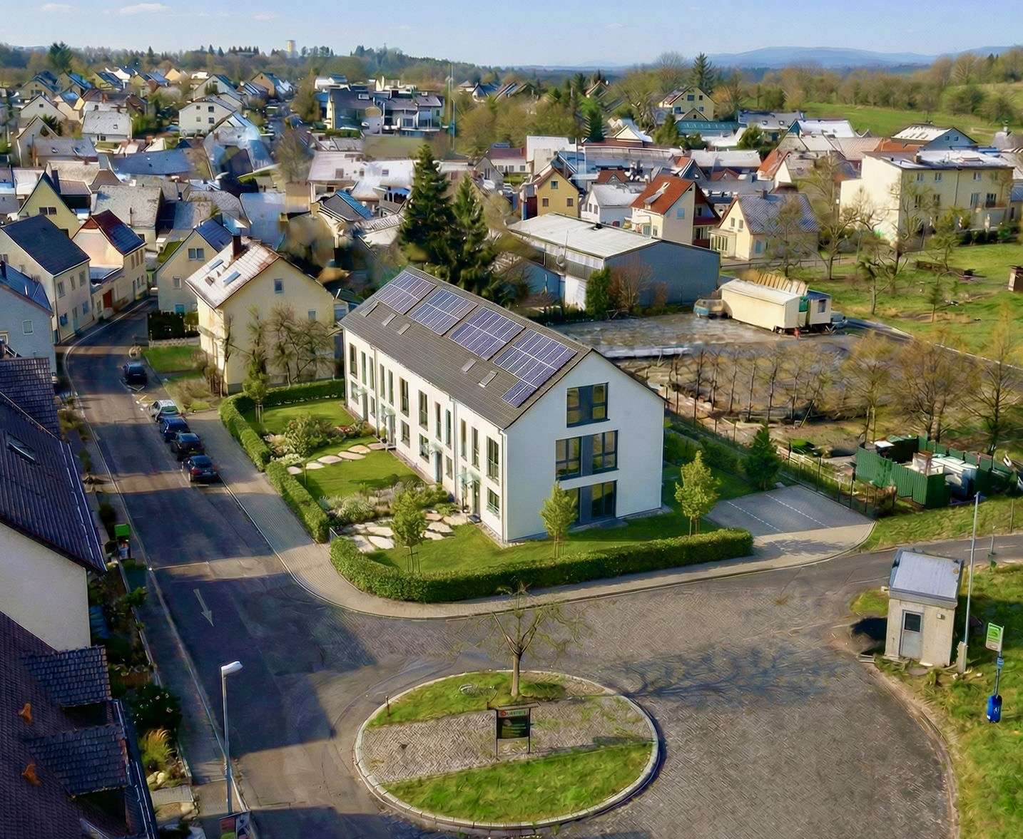 Die Ecklage bietet zusätzliche Fensterflächen und damit besonders viel Tageslicht sowie ein großzügiges Raumgefühl und ein zukunftsorientiertes Energiekonzept.