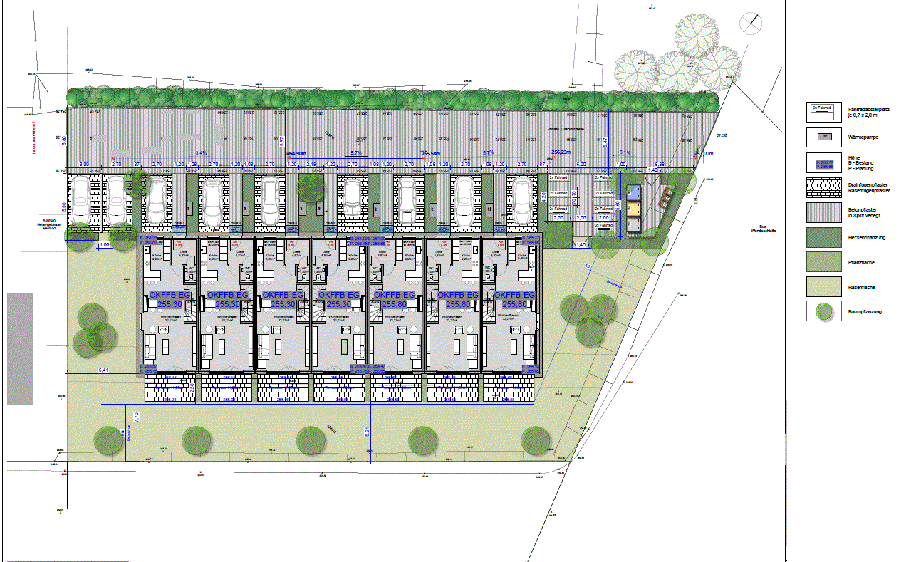 Die Häuser werden im energieeffizienten KfW-40-Standard errichtet und erfüllen die aktuellen Anforderungen des Gebäudeenergiegesetzes .