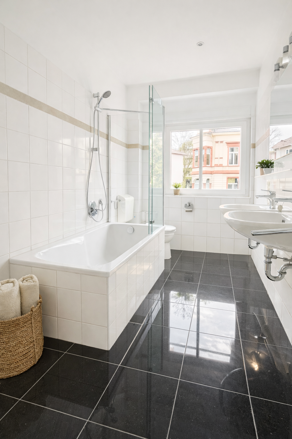 - Tageslichtbad mit Duschwanne & Waschbecken und WC