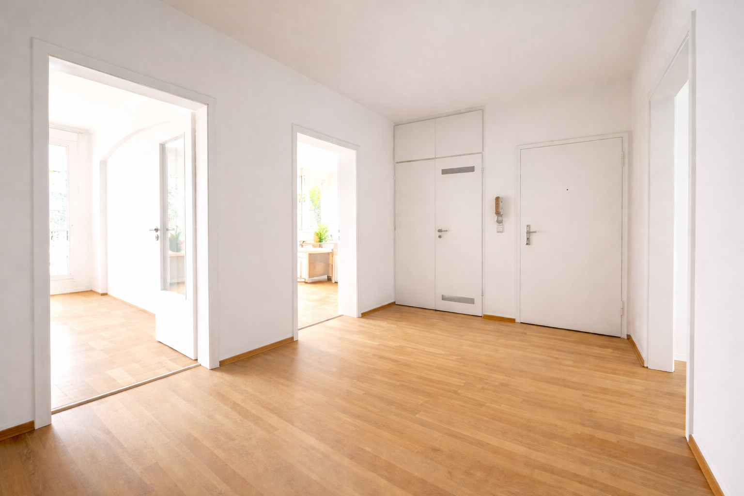 Vom großzügig gestalteten Flurbereich gelangen Sie in alle Räume. Zusätzlich bietet dieser viel Platz für Garderobe oder Schrankelemente.